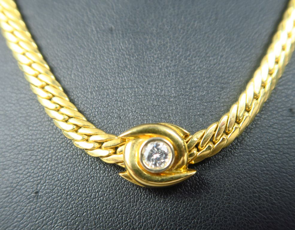 Collier souple en or jaune, orné d'un brillant. Poids tel. 24,3 g