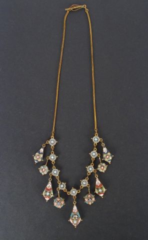 Collier XIXème en micromosaïque et métal doré, à décor de fleurs polychrome.