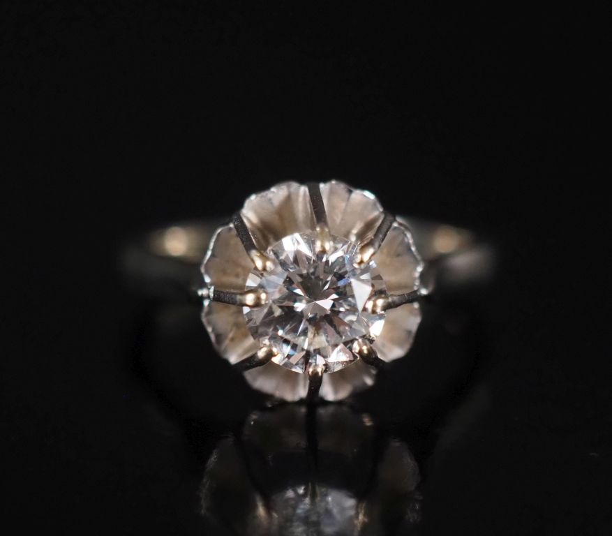 Diamant solitaire de 0,80 cts environ, monture en platine et or blanc Poids : 3,80 g