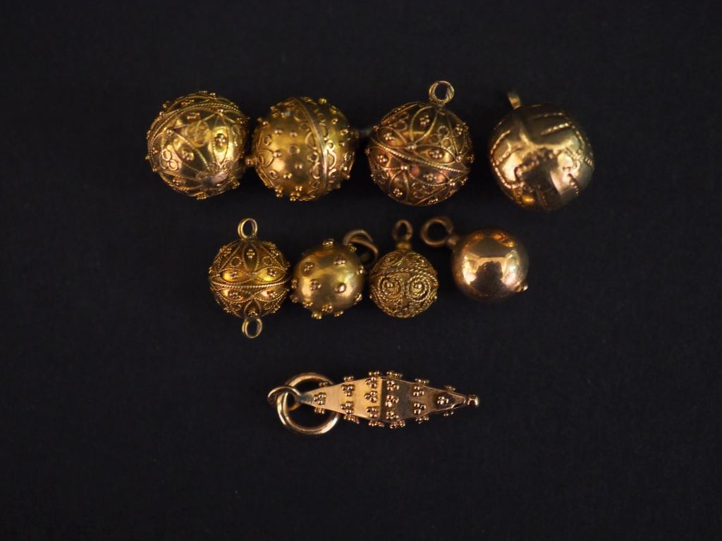 Différents éléments de colliers en or. Poids : 6,46 g