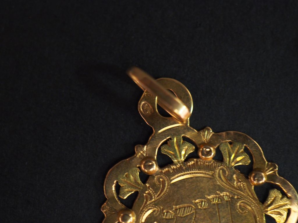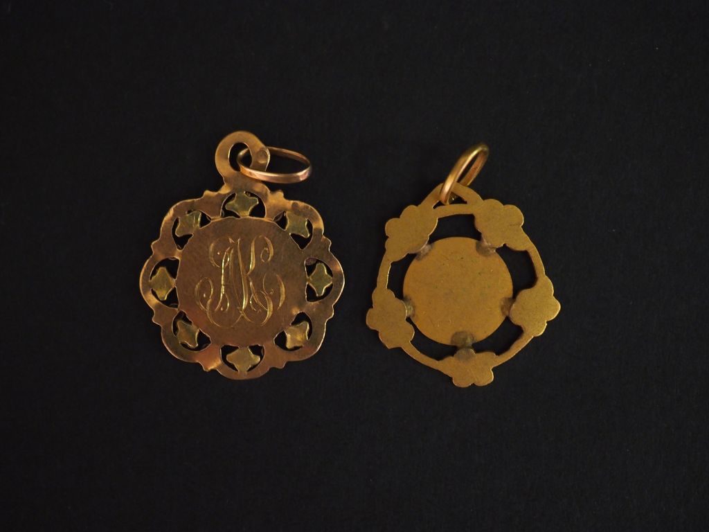 Ensemble comprenant deux différentes médailles ajourées en or jaune, à décor de fleurs. Diam. 2 cm Poids. 3,14 g (gravées)