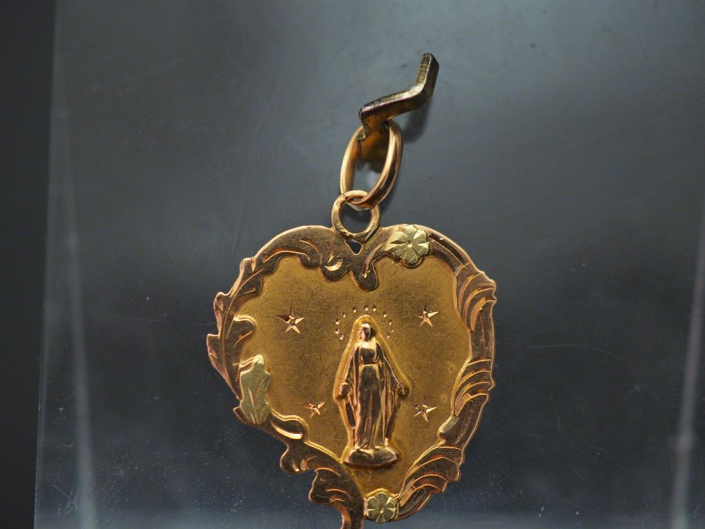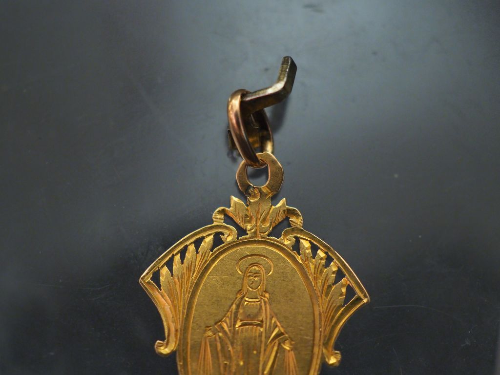 Ensemble comprenant sept différentes médailles religieuses en or jaune, figurant la Sainte Vierge. Poids. 8,86 g (trois d'entre elles gravées au dos)