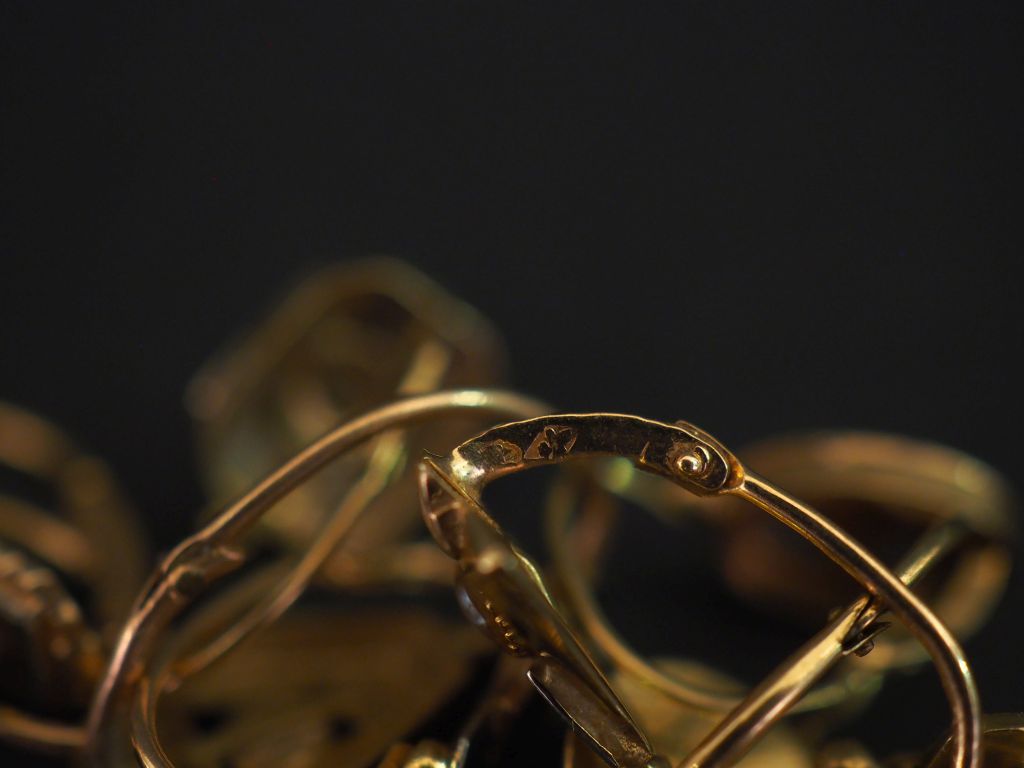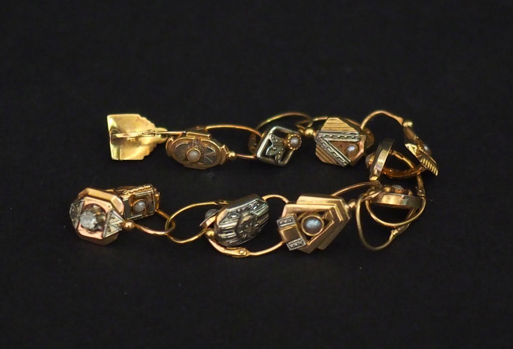 Ensemble de perces oreilles dépareillés en or jaune 750, sertis d’une perle blanche ou d’une pierre à l’imitation du diamant. Poids tel. 5,29 g