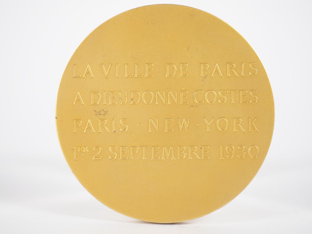 G. PRUD'HOMME. Médaille en argent doré Ville de Paris. La ville de Paris à Dieudonné Costes Paris-New York - 1-2 septembre 1930 Poids : 220 g