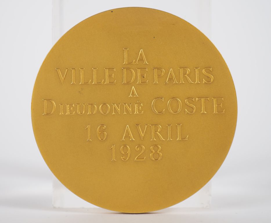 Georges Henri PRUD'HOMME. Médaille en or "Ville de Paris, La Ville de Paris à Dieudonné Costes 16 avril 1928" Poids : 82,37 g