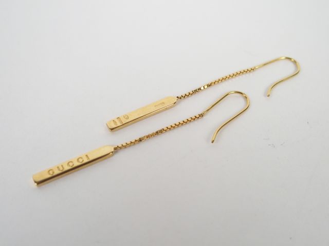 Lot de GUCCI. Paire de perce-oreilles en or jaune gravées GUCCI. Poids: 3,2gr au prix de 50 à 100 € en vente aux enchères par l'hôtel des ventes Primardeco
