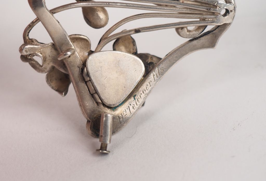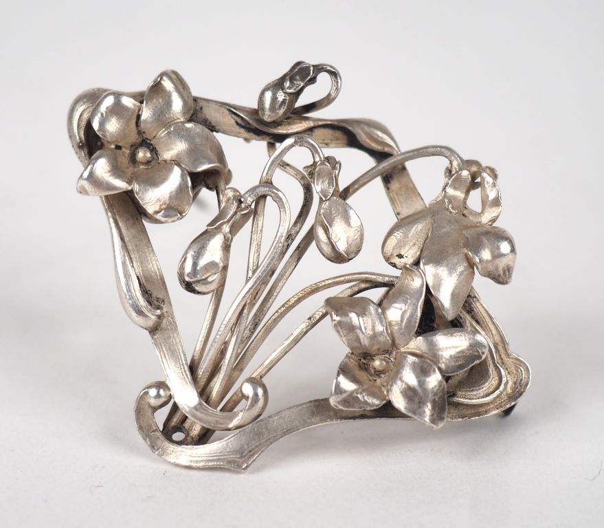 Henri TETERGER fils. Broche Art nouveau en argent à décor en relief de fleurs. Signée. Poids tel. 26 g.