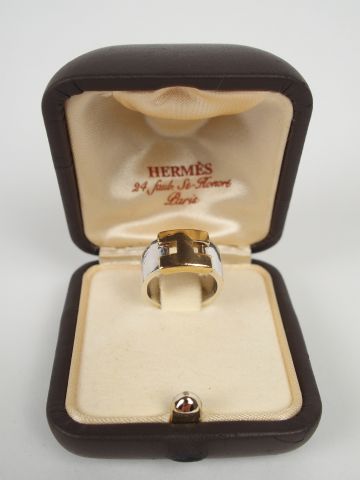 Lot de HERMES. Bague en or et argent. Dans son écrin d'origine. TDD 49. Poids au prix de 300 à 400 € en vente aux enchères par l'hôtel des ventes Primardeco