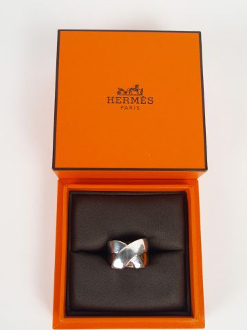 Lot de HERMES. Bague en or et argent. Dans son écrin d'origine. TDD 50. Poids au prix de 300 à 400 € en vente aux enchères par l'hôtel des ventes Primardeco