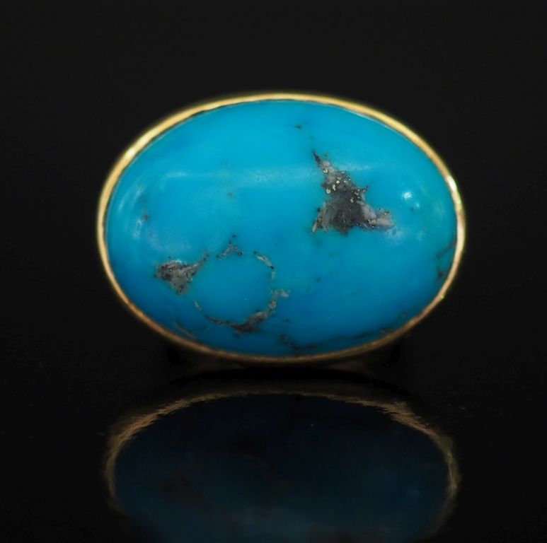 Importante bague en or jaune 750, sertie en son centre de turquoise en cabochon. TDD. 57 Poids tel. 23,97 g