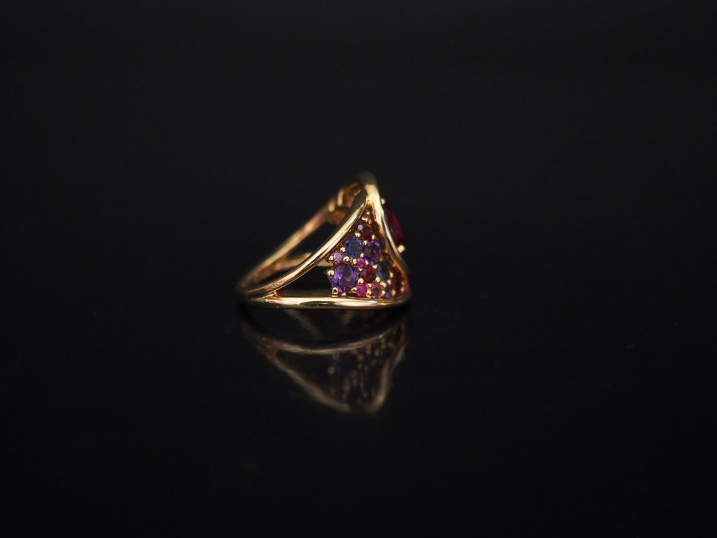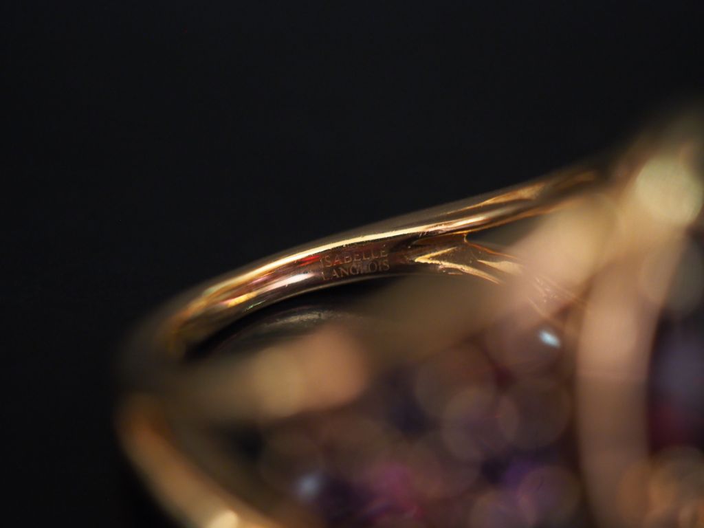 ISABELLE LANGLOIS Bague de forme stylisée en or rose, sertie de pierres de couleur. Signée. TDD. 50 Poids tel. 8,91 g