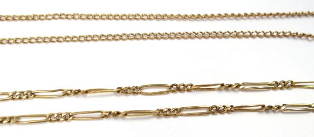 Lot comprenant : - une chaine en or, maille gourmette (60 cm. Poids : 6,69 gr) - une chaine en or, maille alternée (45,5 cm. Poids : 9,17 gr) Poids total : 15,87 gr