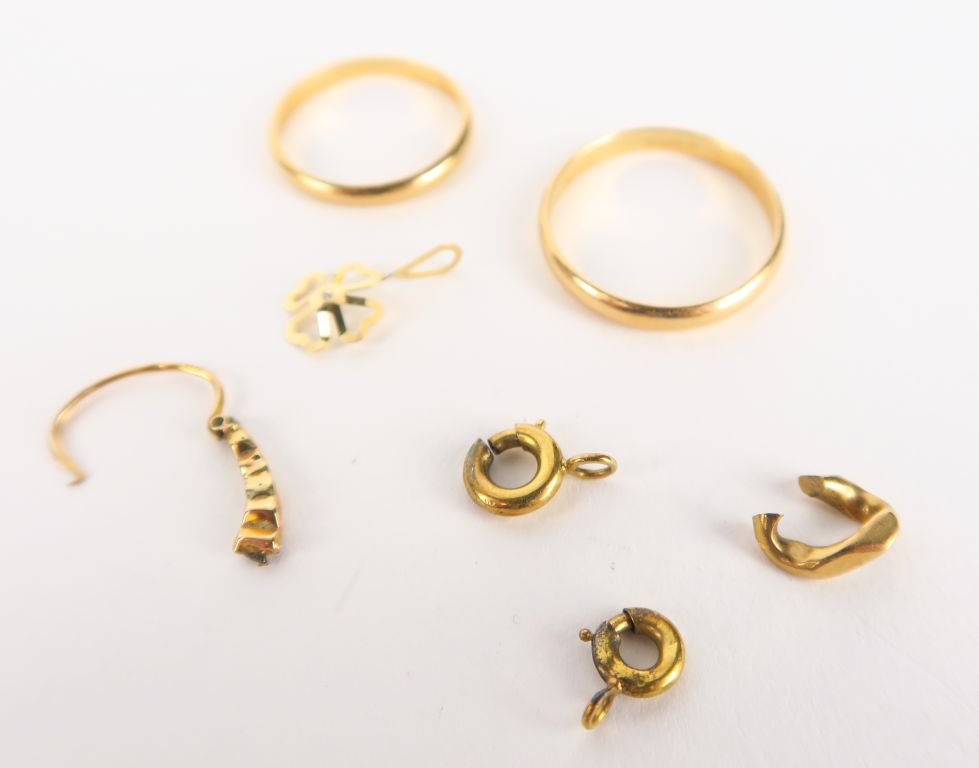 Lot d'or dont deux alliances. Poids : 6,2 g
