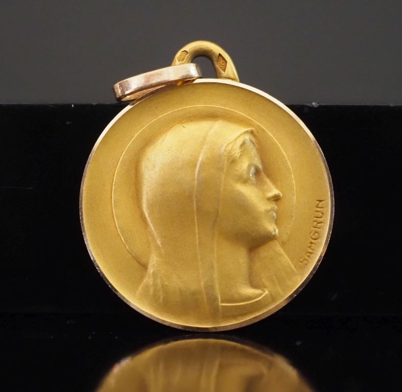 Médaille de baptême en or 750 "profil de Sainte Vierge" signée Samgrun Poids : 5,20 g