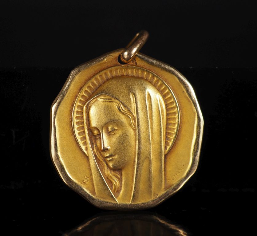 Médaille de baptême en or 750 "Sainte Vierge" Poids : 6,25 g
