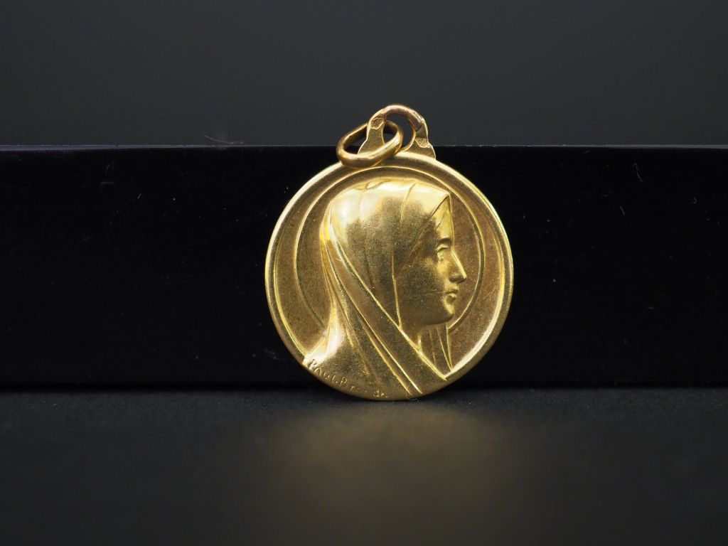 Médaille de baptême en or jaune, figurant la Sainte Vierge. Poids. 3,85 g (gravée)