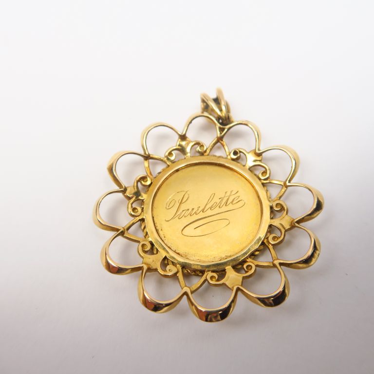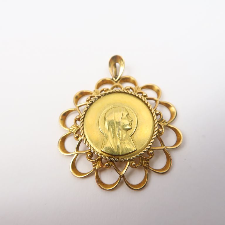 Médaille de baptême en or jaune, monture ajourée. (gravée) Poids. 8,55 g