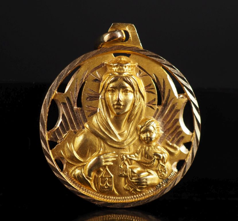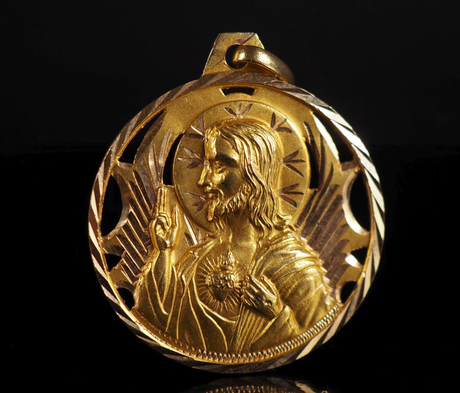 Médaille double face en or 750 gravé et ajouré Poids : 5,20 g