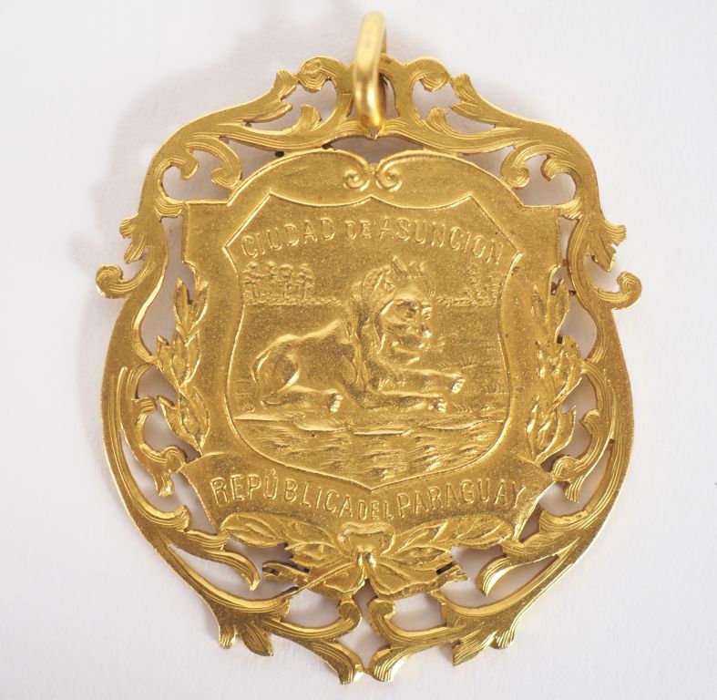 Médaille en or. Ciudad de Asuncion Republica del Paraguay datée XI 927 Poids : 19,36 g Dim. 4 x 3,6 cm