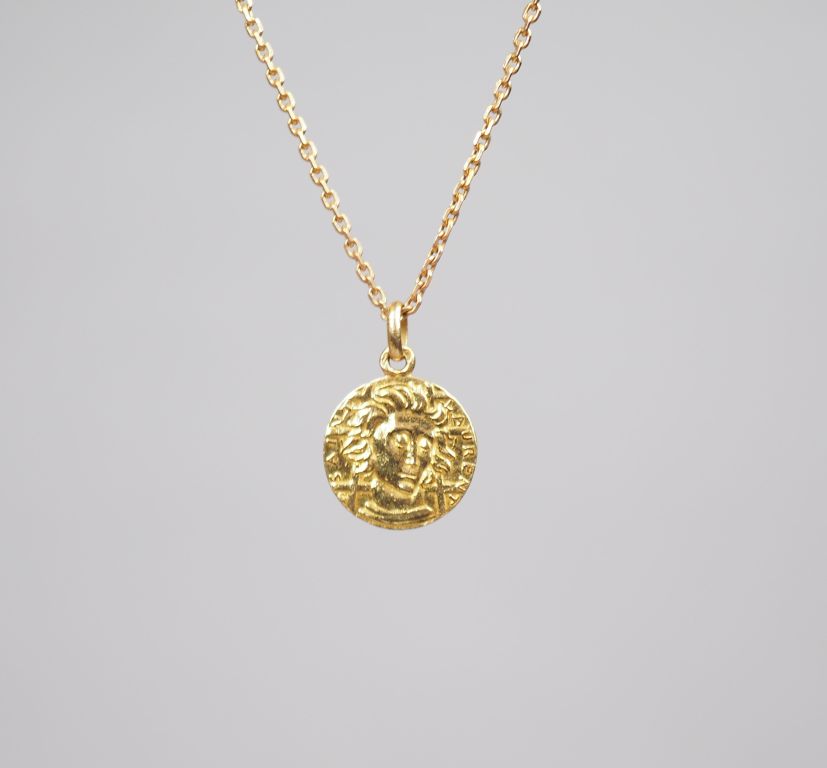 Médaille figurant Saint Laurent et sa chaine en or jaune. Poids. 9,04 g