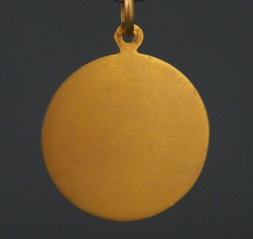 Médaille religieuse en or jaune, figurant la Sainte Vierge en Majesté en relief. Diam. 2,2 cm Poids. 4,20 g