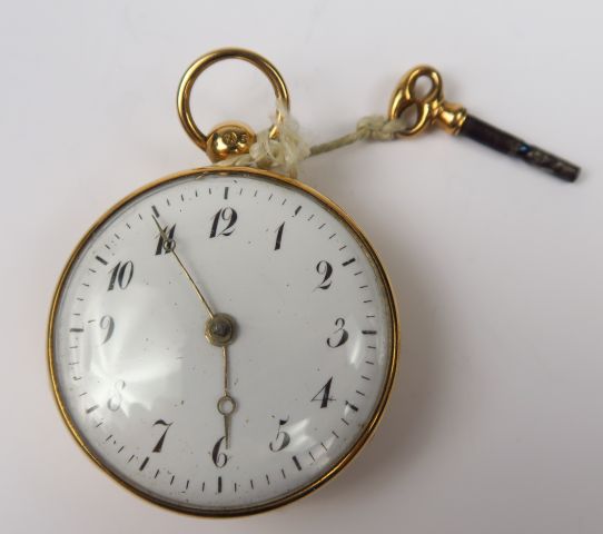 Montre de gousset en or 14 carats, avec sa clé. Poids tel : 58 g