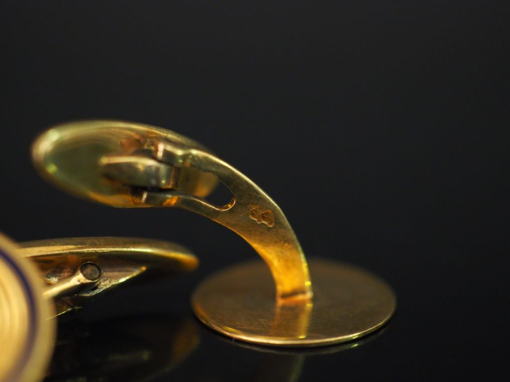Paire de boutons de manchettes en or jaune et émail bleu nuit, à décor de cercles concentriques. Poids tel. 6,17 g