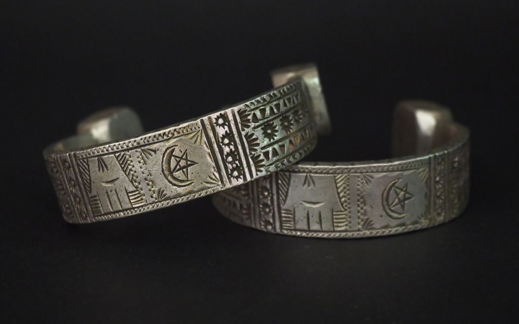 Paire de chevillères Afrique du Nord en argent, à décor de motifs géométriques et croissant de lune. Poids. 470 g