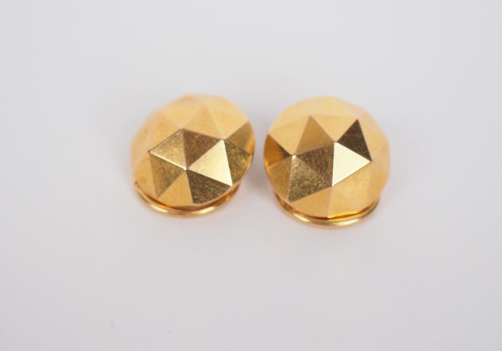 Paire de clips d'oreilles en or jaune en forme de demi-sphère facettée. Poids. 2,91 g