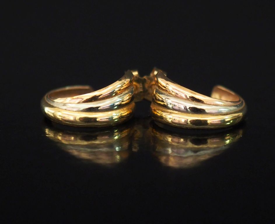 Paire de demi créoles trois tons d'or de forme torsadée. H. 1,5 cm Po...
