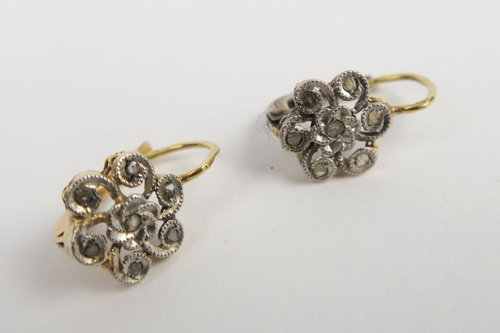 Paire de perce-oreilles en or, ornées d'éclats de diamants. Poids tel : 1,7 g