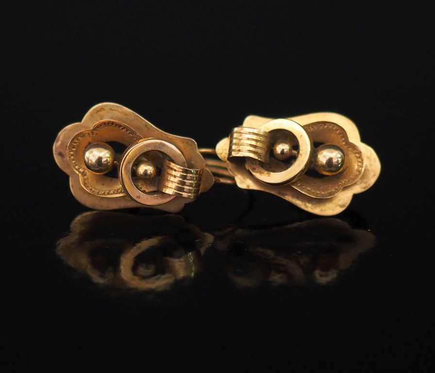 Lot de Paire de perces oreilles Napoléon III en or jaune, à décor ajouré. H. au prix de 60 à 80 € en vente aux enchères par l'hôtel des ventes Primardeco