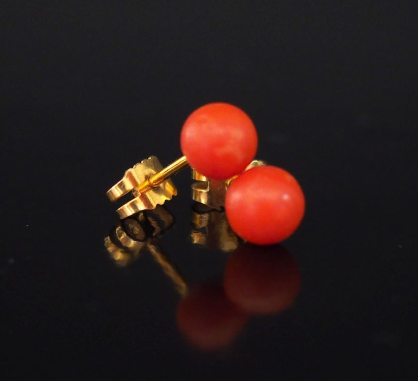 Paire de puces d'oreilles en or jaune et corail. Poids tel. 1,69 g ...