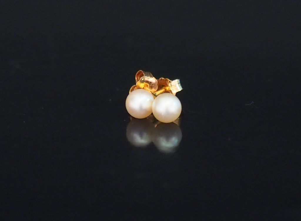 Lot de Paire de puces d'oreilles en or jaune et perle blanche. Diam. 4 mm env au prix de 20 à 50 € en vente aux enchères par l'hôtel des ventes Primardeco