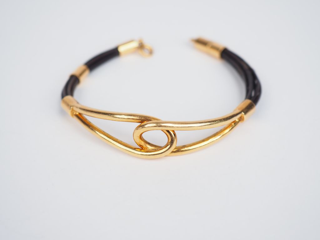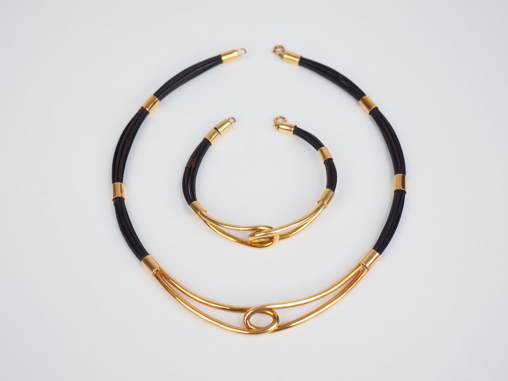 Parure en or jaune et poils d'éléphant. Comprenant : - un collier - un bracelet Poids tel. 48 g