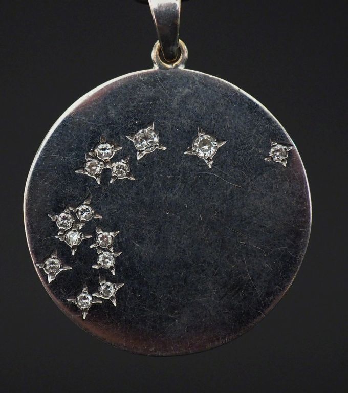 Pendentif circulaire en or blanc, sertie de quatorze petits diamants. ...