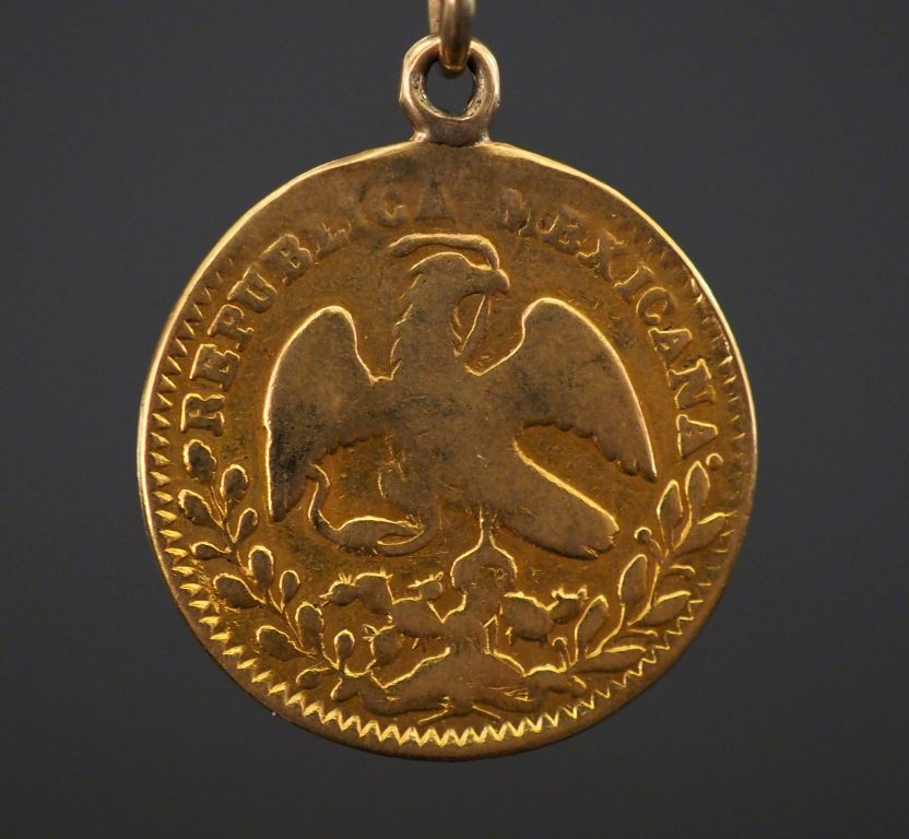 Lot de Pendentif circulaire en or jaune de la République Mexicaine. Diam. 2,4 au prix de 180 à 220 € en vente aux enchères par l'hôtel des ventes Primardeco