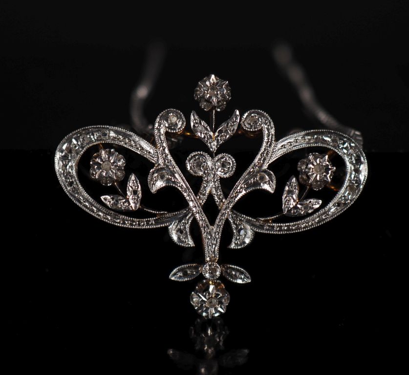 Pendentif de style 1900 en or en forme de fleuron, avec sa chaine en or maille à section carrée Poids tel : 10,80 g