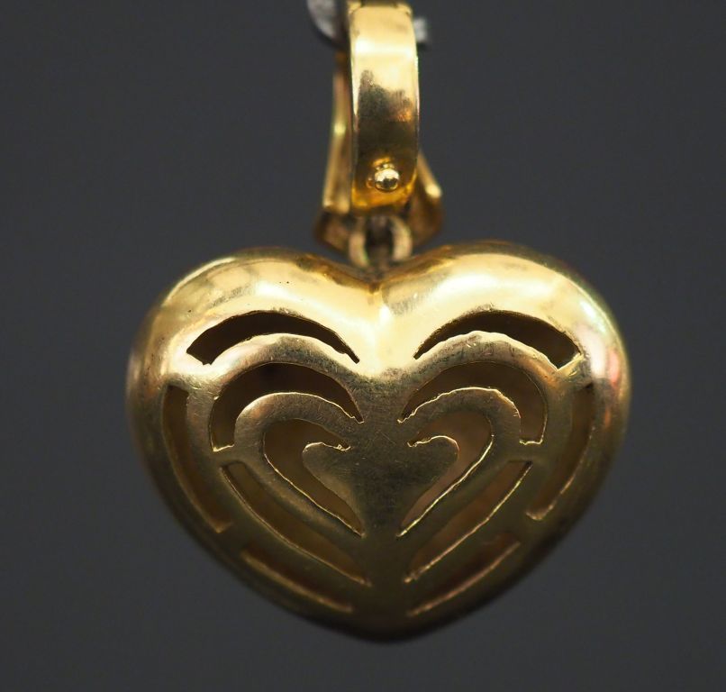 Pendentif en forme de cœur, en or ajouré, émaux polychromes, fermoir agrémentée de roses. Poids tel : 19,30 g
