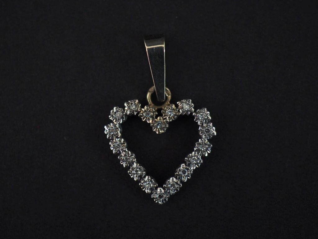 Lot de Pendentif en or blanc 750 en forme de cœur, serti de petits diamants. au prix de 200 à 300 € en vente aux enchères par l'hôtel des ventes Primardeco