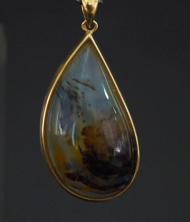 Pendentif en or jaune 750 en forme de goutte, sertie en son centre d'agate. 4,1 x 2,3 cm Poids tel. 15,12 g