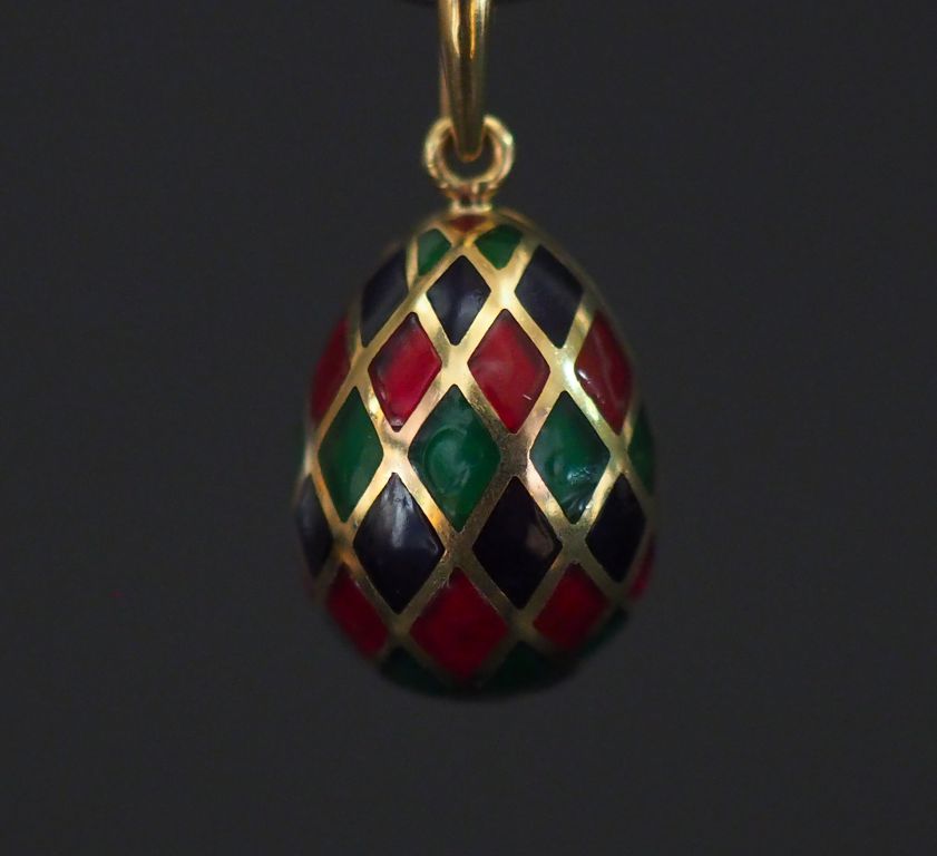 Pendentif en or jaune et émail polychrome en forme d'œuf, à décor de motifs géométriques. H. 1,4 cm Poids tel. 2,31 g