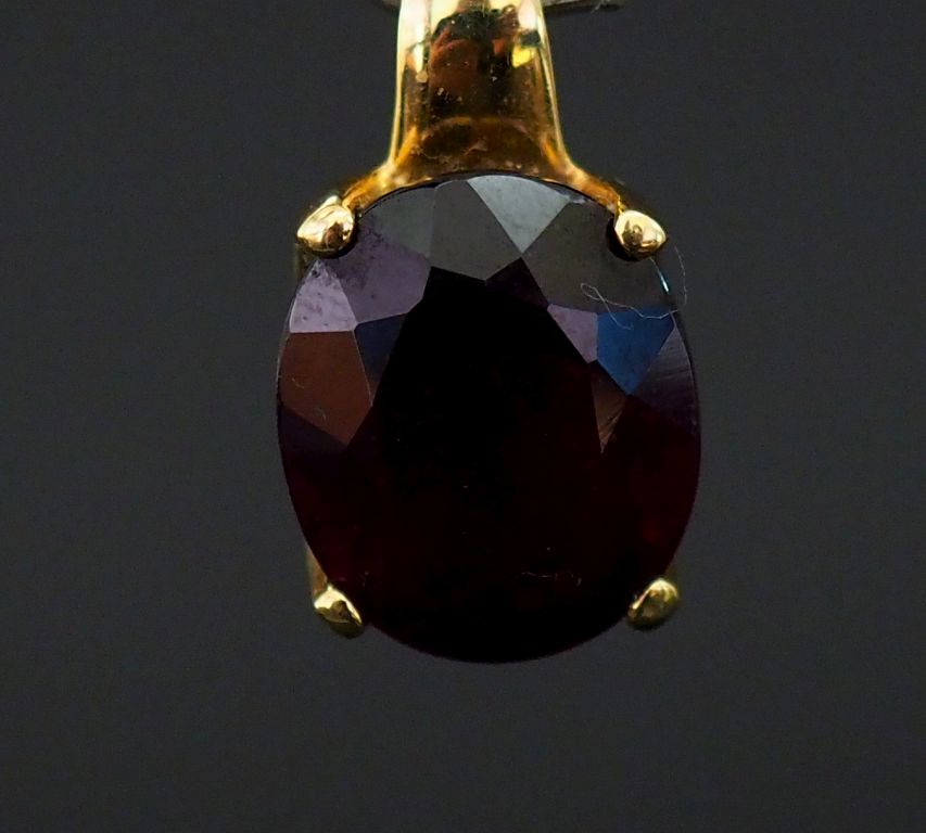 Lot de Pendentif en or jaune, serti en son centre d'une pierre rouge. H. 1,8 au prix de 60 à 100 € en vente aux enchères par l'hôtel des ventes Primardeco