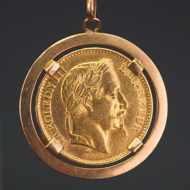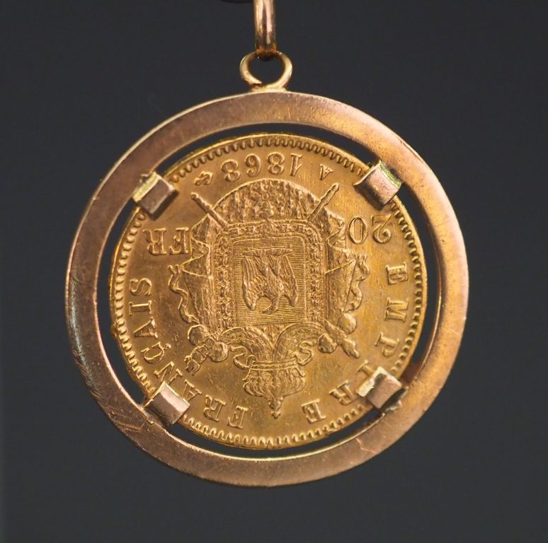 Pendentif en or jaune, sertie en son centre d'une pièce de 20 Francs or, 1868-A. Poids. 9,49 g