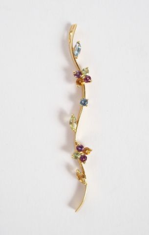 Pendentif monture or jaune parsemé de pierres de couleur formant une tige fleurie. 5cm environ Poids tel: 2gr