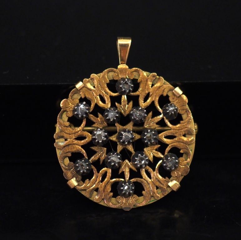 Lot de Pendentif Napoléon III en or ajouré et roses. Diam. 3 cm Poids tel : 7 au prix de 100 à 150 € en vente aux enchères par l'hôtel des ventes Primardeco