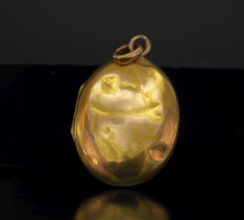 Pendentif porte-photo de forme ovale en or jaune. 2,5 x 2 cm Poids. 2,61 g (petits enfoncements)