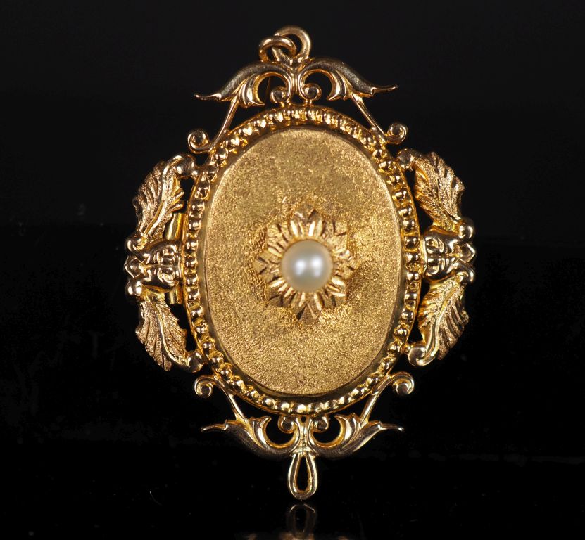 Pendentif porte photo Napoléon III en or et perle, décor ajouré de fleurons et de feuillage Poids tel : 6,50 g