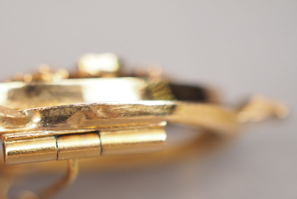 Pendentif transformable en broche Napoléon III en or jaune et perles, à décor de branchages. 5,2 x 2 cm Poids tel. 3,52 g (petits enfoncement)