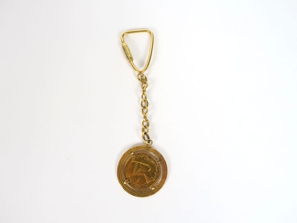 Pièce égyptienne montée en porte-clés en or jaune. Poids. 15,22 gr